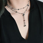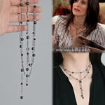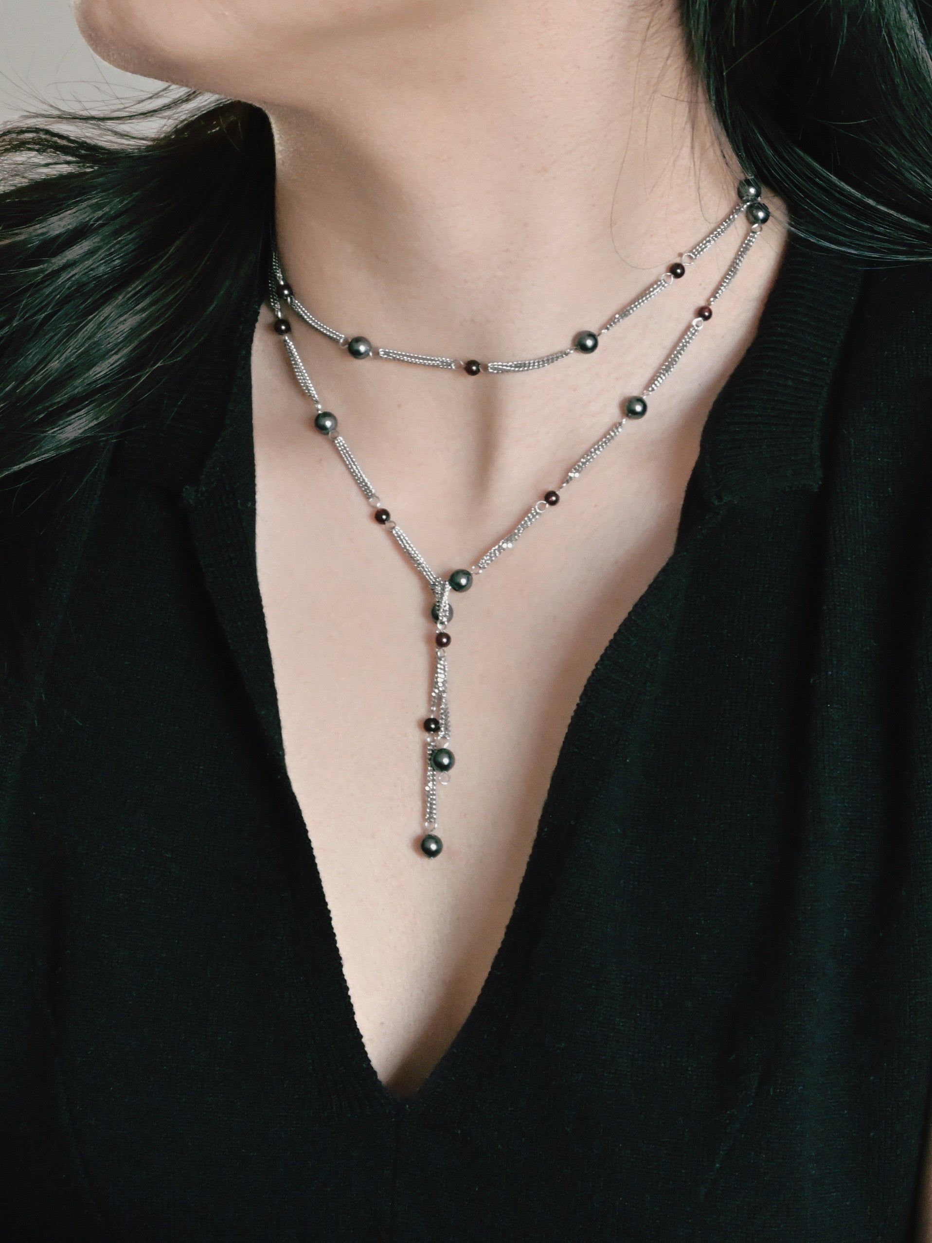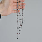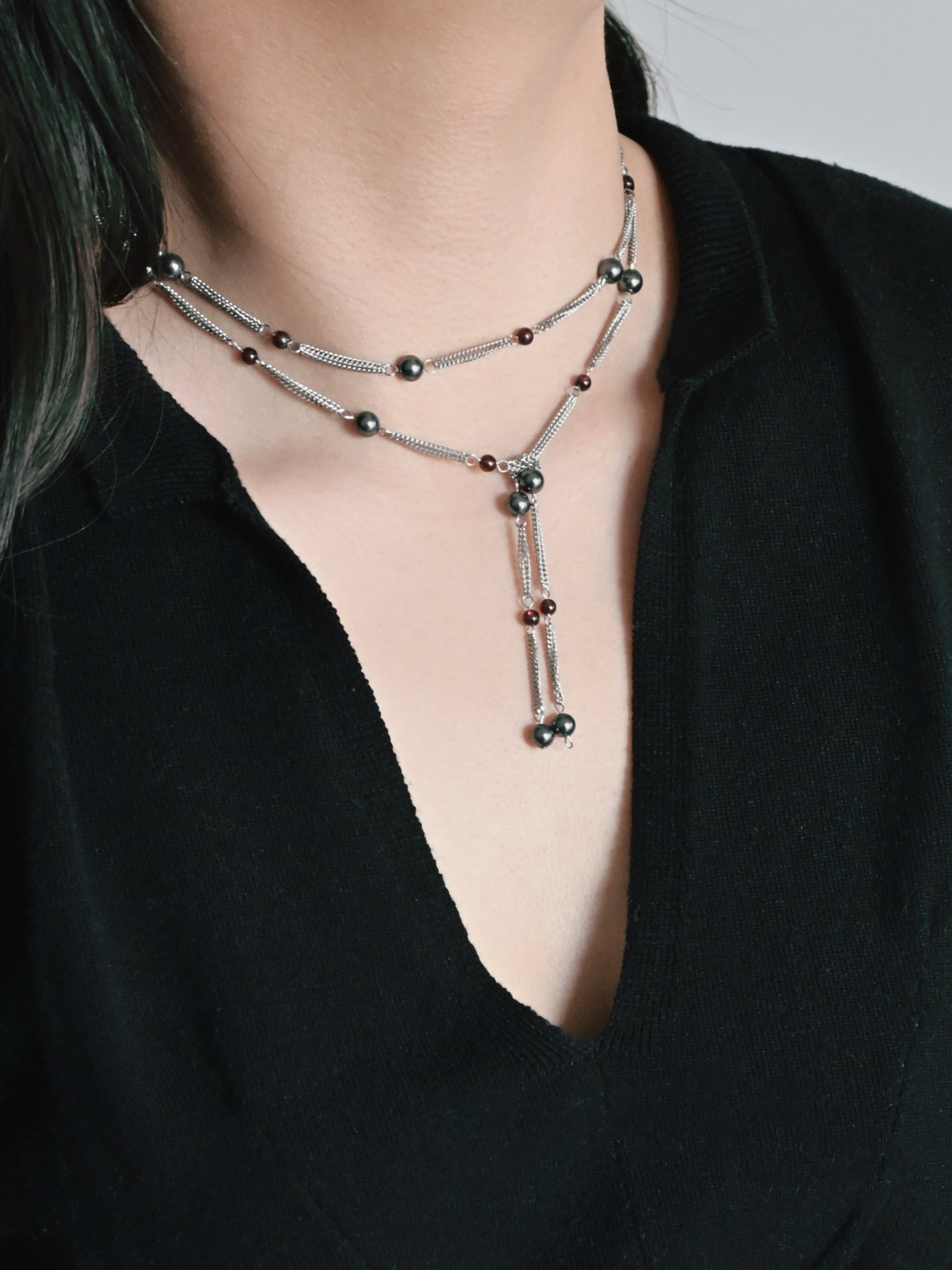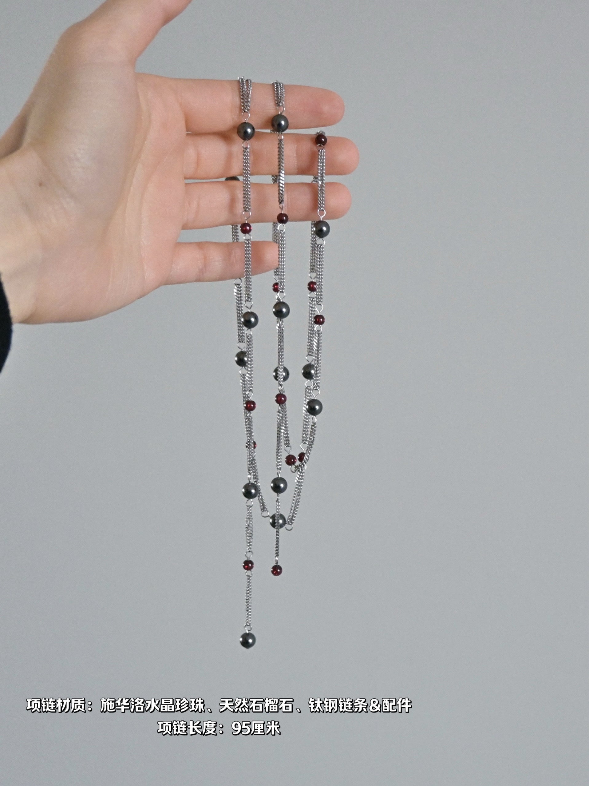 Material: Stainless steel, garnet stone and Swarovski pearls