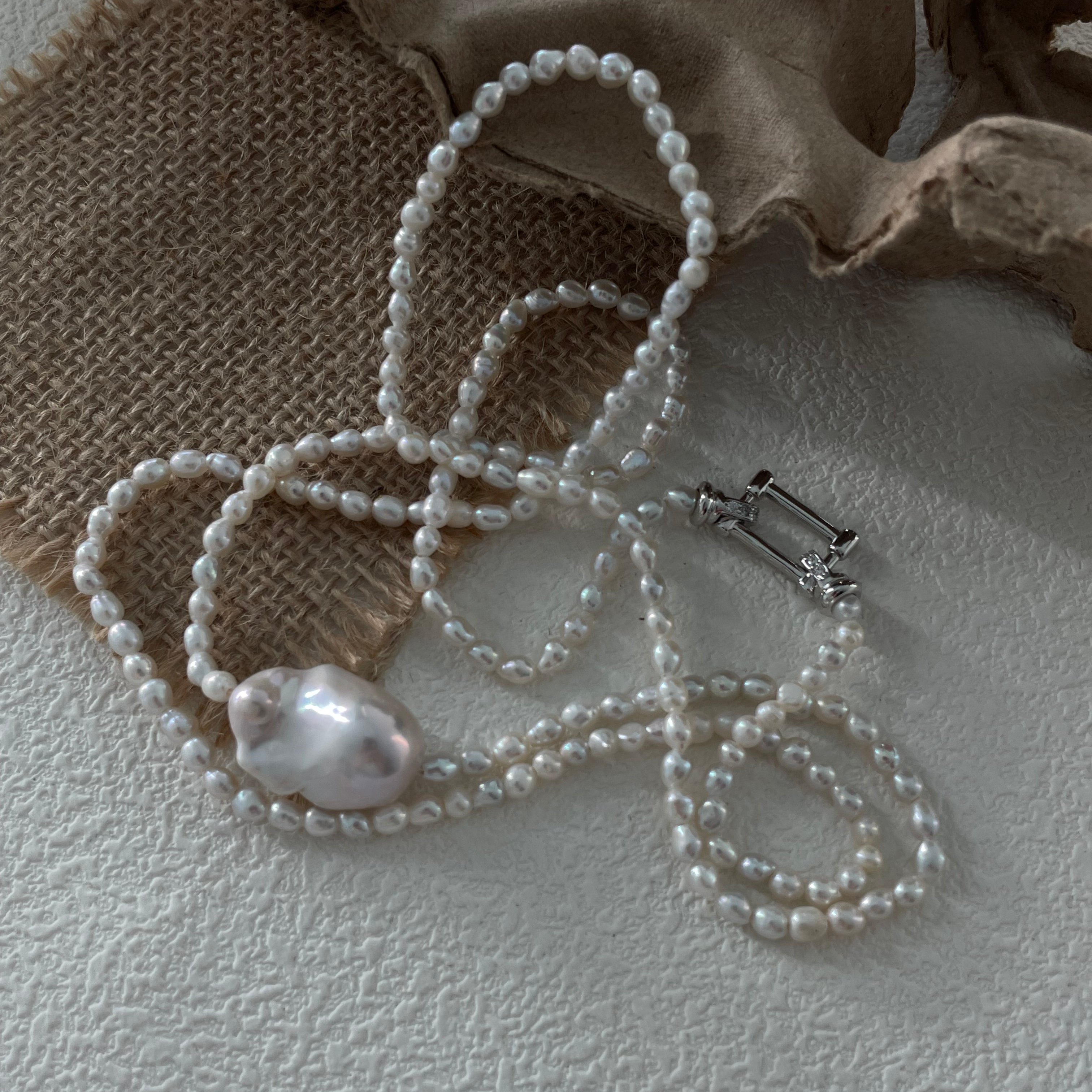 ALEXANDRA Statement Baroque pearl and bead necklace