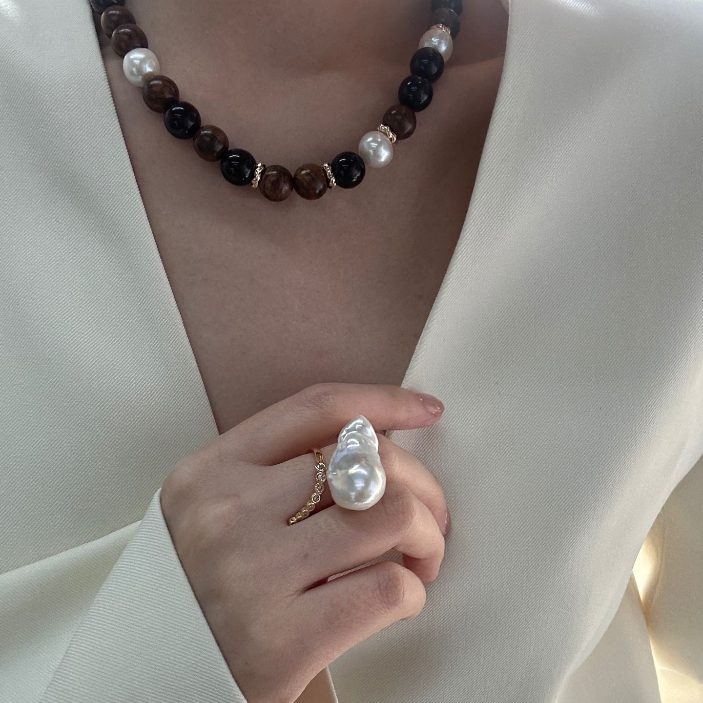 ALEXANDRA Statement Baroque pearl and bead necklace - ZEN&CO Studio
