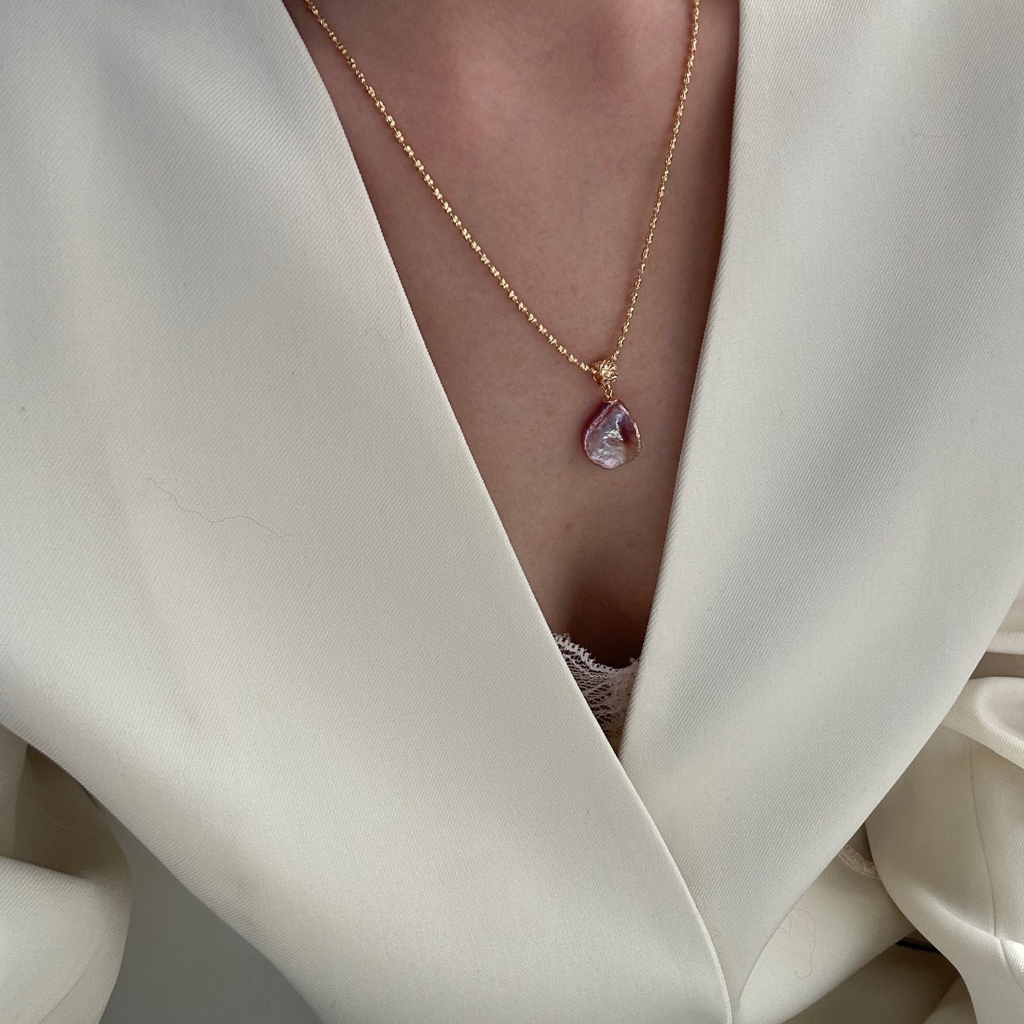 BRIDY Baroque Pearl Pendant and Garnet Necklace
