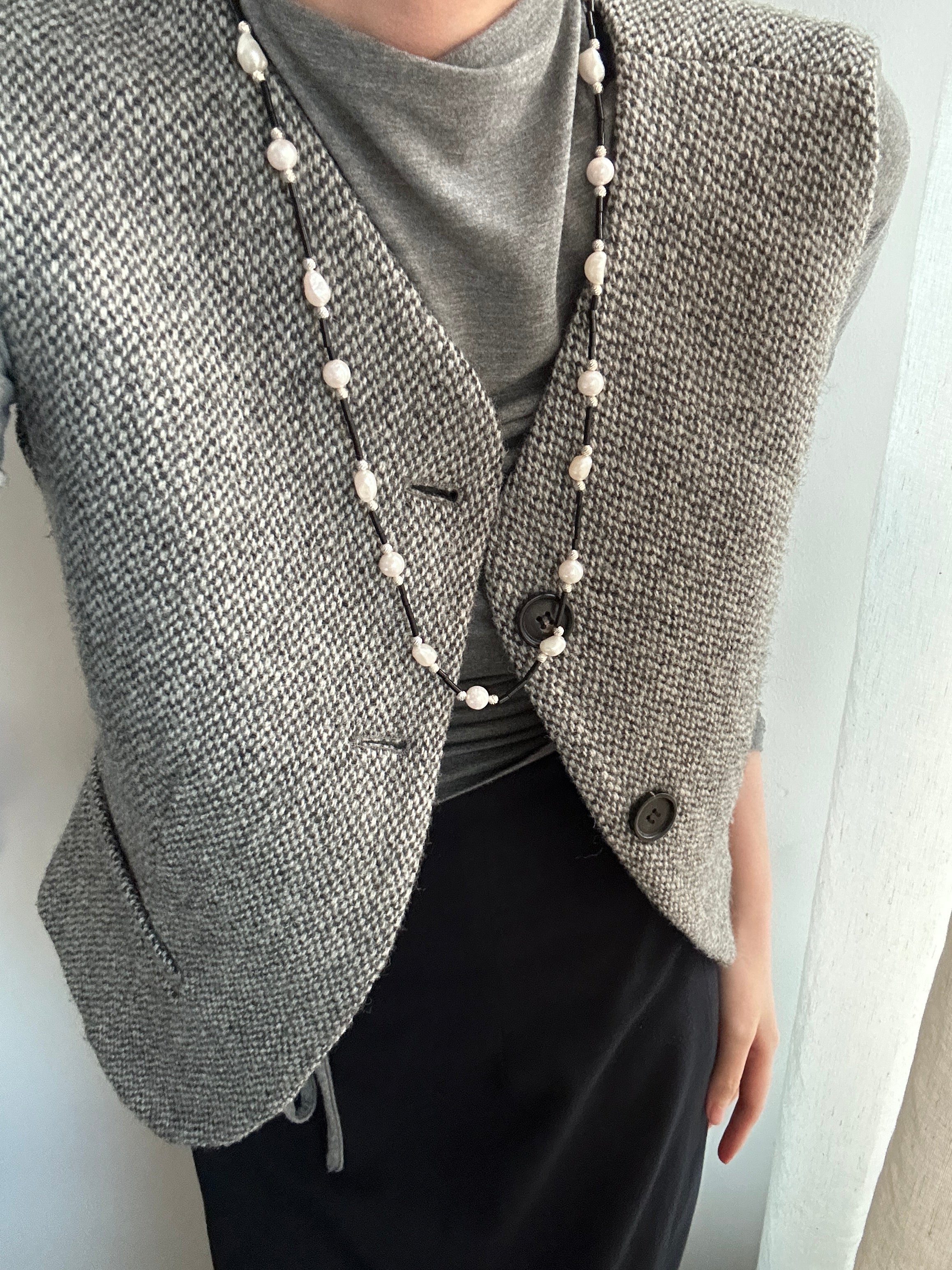 ALESSIA Pearl and Black Onyx Long Necklace